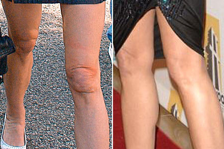 Polvet ovat melko varma paikka tarkistaa naisen ikä. Polvien ohut iho rypistyy vaakarypyille ajan saatossa ja polvet myös alkavat ”roikkua”, kun lihakset niiden ympärillä eivät enää tue riittävän hyvin. Julkkikset ovat teettäneet polvien korjausleikkauksia, vaikka ko. leikkaus on ilmeissesti erityisen hankala saada onnistumaan hyvin. Alla Demi Mooresta mallia, mitä polvien leikkaaminen saa aikaan (eivätkä hänen polvensa olleet vielä edes erityisen pahan näköiset):