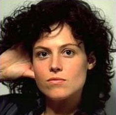 Tässä vertailun vuoksi kuva, jossa hän on noin 30-vuotias, olettaakseni ekan Alien-leffan ajoilta (tosin hiuksia on noin paljon, hmm). Silmät ovat nuoruuskuvassa avoimemmat ja kasvojen muoto pehmeämpi, mutta samat kauniit kasvot hänellä edelleenkin on: