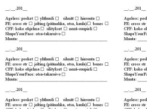 Eli olen tuohon lappuuni kerännyt ne asiat, joita vaihtelevasti teen. Koskaan en tee yhtenä päivänä kaikkea tuota, mutta melkein joka päivä teen listasta jotain. Olen siis käytännössä tehnyt word-tiedoston, johon olen yhdelle sivulle laittanut noita ”tietueita” kahteen sarakkeeseen seitsemän allekkain. Sitten olen printannut itselleni läjän noita papereita ja laittanut paperinipun + kynän muovitaskuun. Tämä muovitasku kulkee käsilaukussani (onneksi se on aika iso 🙂 mukana eli jos satun vaikka töissä innostumaan tauolla jotain pientä värkkäämään, niin voin sen heti merkkailla muistilappuuni. Saa kyllä nähdä kauanko saan aikaiseksi tällaista kirjanpitoa pitää. Tuo on melko kömpelö systeemi, parempi olisi joku pieni kirjanen, joka kulkisi mukana, mutta sellainen on aika hankala tehdä itse. Joskin… hmm! Mitähän tulisi maksamaan, jos sellaisen painattaisi 😀 Tiedättehän, niitä on kirjapainoja, jotka painavat vaikka vain yhden kirjan! Vaikkapa Lasipalatsi. Ja voisihan siitä tietysti tehdä vaikka sen verran yleisen pohjan, että se kävisi muillekin kuin minulle itselle. Hmm, ei tuosta ehkä kyllä bisnekseksi ole. Mutta mahtaisikohan vaikka kolmellakympillä saada sen yhden kappaleen painatettua. Taidan ottaa joskus selvää.
