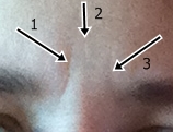 Löysin mahtavan rentouttavan otsahieronnan, jolla kulmien välin pystykurttuja pitäisi saada loivennettua. Alkuperäinen vinkki tähän tuli Essential Day Span keskustelufoorumeilta. Ajatuksena tässä hieronnassa on rentouttaa lihaksia, jotka vaikuttavat näiden huolikurttujen muodostumiseen. Kulmien välihän on meillä kaikilla aika aktiivista aluetta kasvoissa: kurtistelemme kulmia ja siristelemme silmiä, kun on kirkas ilma, keskustellessa menevät kulmat kurttuun milloin mistäkin syystä, murhetta jos on paljon, niin juuri tuossa kulmien välin kurtisteluna se näkyy, ja yöllä nukkuessakin kasvolihakset toimivat aika aktiivisesti juuri tuossa otsan alueella. Ja se sitten näkyy joillakin jo tosi nuorena kulmien välin pystyryppyjen muodossa. Botoxiahan tähän vaivaan perinteisesti on käytetty, mutta onneksi on olemassa luomumpiakin konsteja, joita kokeilla.