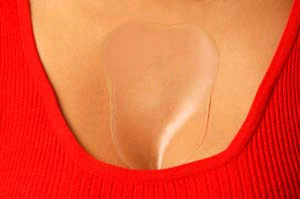 Vähän erilainen, mutta vastaavasti toimiva lätkä löytyy ChestWrinkleltä. Se on ilmeisesti paksuhko (silikoninen?) tyyny, joka liimataan rintaan kiinni: